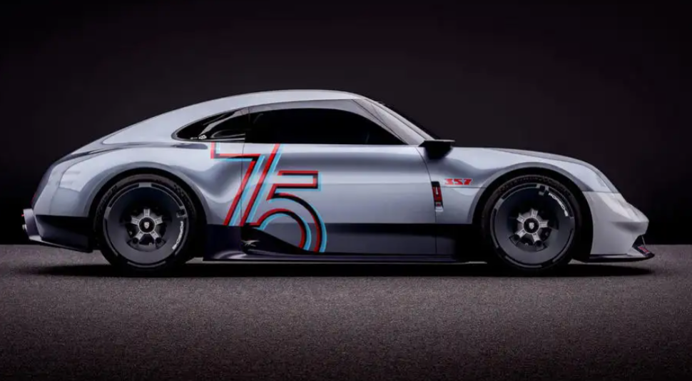 The 357 has a unique livery that gives it the appearance of a road-going racer, with 75th-anniversary insignia decorating the doors and bonnet. The 357 is an "effort to connect the past, present, and future with coherency," according to Vice President of Style Porsche Michael Mauer, while exhibiting "elements that depict the perspective for the future."